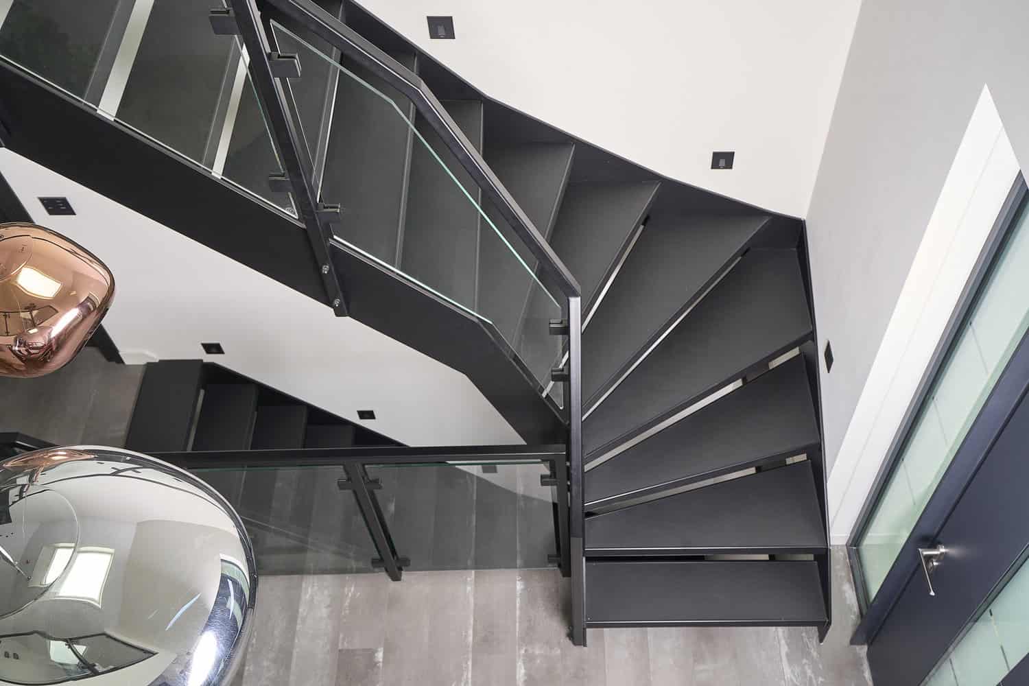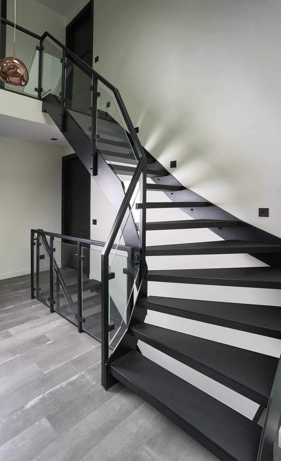 In deze villa in Vinkeveen trekken twee imposante trappen direct de aandacht. Bekleed met hoogwaardig leer door Stairscape, vormen ze een stijlvol en functioneel middelpunt van het interieur. Het natuurlijke materiaal voegt warmte en diepte toe, terwijl de strakke afwerking en het vakmanschap zorgen voor een moderne uitstraling die perfect aansluit bij de architectuur van de woning. Het gebruikte leer is niet alleen duurzaam en slijtvast, maar ontwikkelt met de jaren ook een uniek karakter.